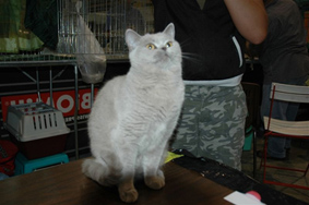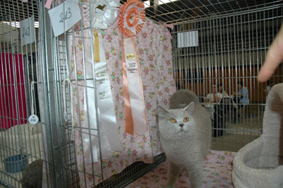 Das ist Mortisha, eine Katze aus meiner Zucht, die am der Ausstellung wieder getroffen haben. Sie hat ihr CAC gemacht