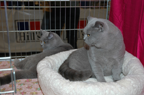 Die Katzen relaxen in ihrem Kaefig. Auch die Katzen geniessen das Interesse an Ihnen jeweils.