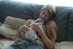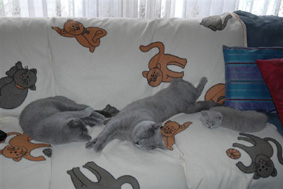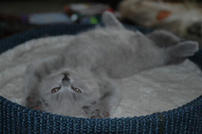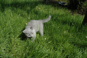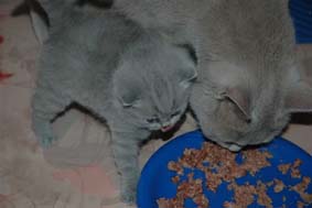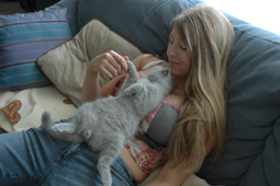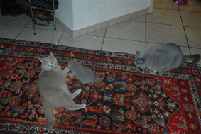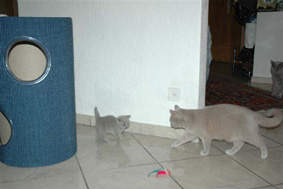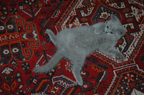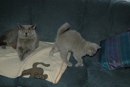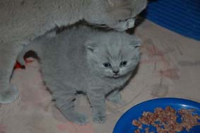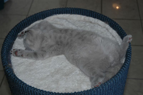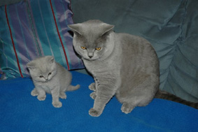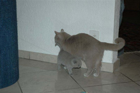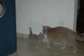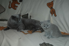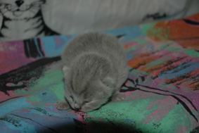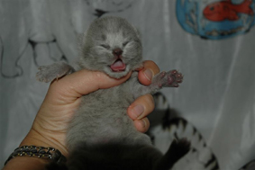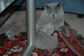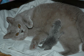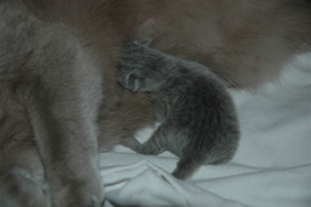 Hurra, Lilas Schwangerschaft ist beendet! Lila hat ein Baby, einen kleinen blauen Kater. Niky heisst dass junge Geschöpf, geboren am 17. Februar 2005. Zwei Mädchen sind leider tot geboren, weil die Geburt so lange dauerte.