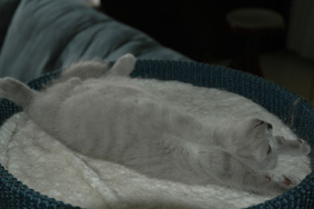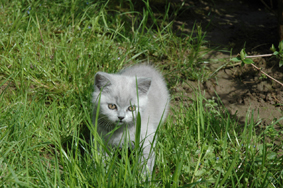 Nun ist Niky eine Woche alt und beim nächsten Mal wird er die Augen offen haben. Warten wirs ab. Niky ist sehr hell und kurzhaarig. Er sieht seinem Vorfahren Majestix jetzt schon ähnlich. Hoffen wir, er kriegt noch die orangen Augen seiner Eltern!