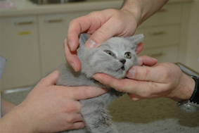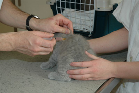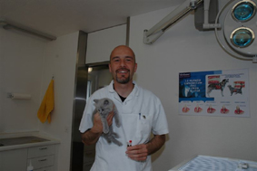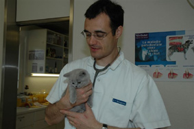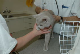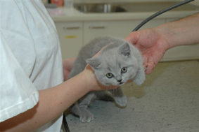 Ha! Jetzt schau ich richtig doof aus der Wäsche. Ich muss für den Leukose-Test herhalten. Bin aber ganz lieb! |