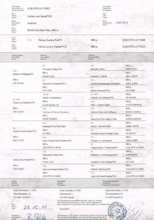 noch zur Auswahl standen. Die Blutgruppe stimmte dann auch noch. Die Eltern waren völlig fremd zu unserem Kater und so bekamen wir ein wunderhübsches Mädchen dazu. Das hervorragend in unsere Zucht passt.